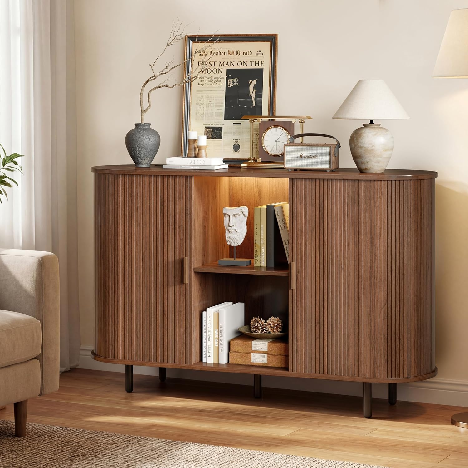 • LED-Enhanced Hub Feature: Enjoy mood-setting RGB LED lighting with adjustable color/brightness, plus 2 AC outlets and 2 USB ports. Transform this buffet cabinet into a coffee bar cabinet, TV stand, credenza, or sideboard—perfect for entertainment and daily charging