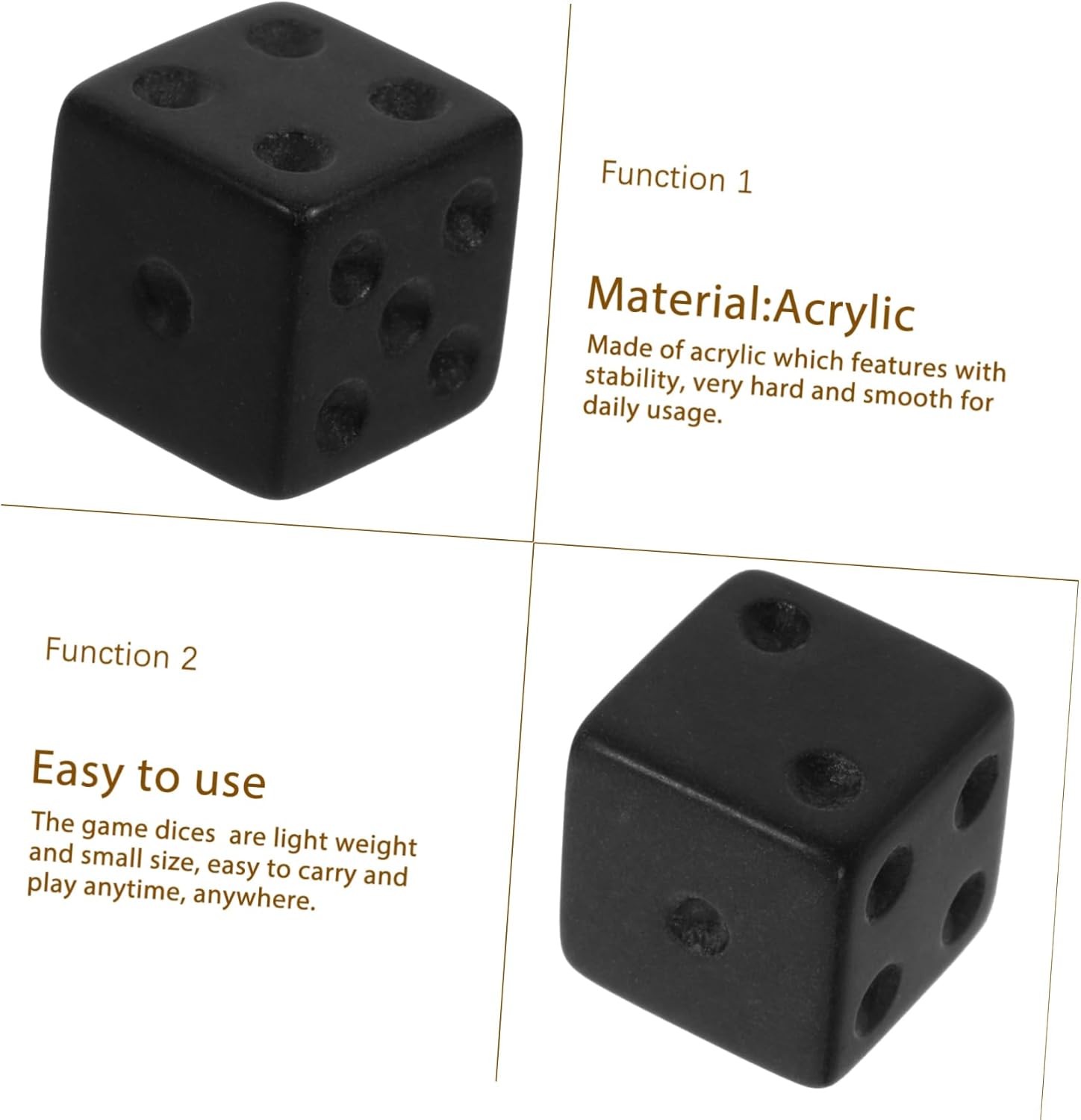 Package List 150 x Dices Features - Color: Black dot dice - Size: 1.60X1.60X1.60cm/0.63X0.63X0.63in Opaque Dice - Material: Acrylic dice game -The game dice is suitable for home, party, bar and other proper places to play board game acrylic dice prop. - They have a of uses. The table game dices are suitable for all kinds of board games, parties, and teaching projects game dice props. - The game dices are lightweight and small size, easy to carry and play anytime, anywhere Acrylic dice. - The smooth and comfortable surface of the dices allows for easy rolling of the dice acrylic dice props. - The board game dices for gathering or parties with friends or colleagues. You will have fun with these interesting dices board game dice.Goods Informationnumber dices want to have a funny Multi Sided dice? Then, you miss our Multi Sided dot dices.acrylic dice prop It is not only an interesting dice game prop, but also a creative plaything.Acrylic dice You can give the dice to your families and friends as a present, they will be happy